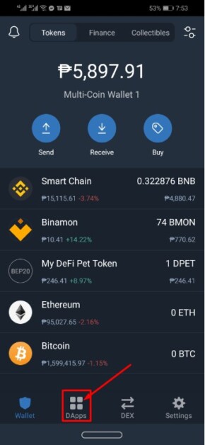 Tap “DApps” below.